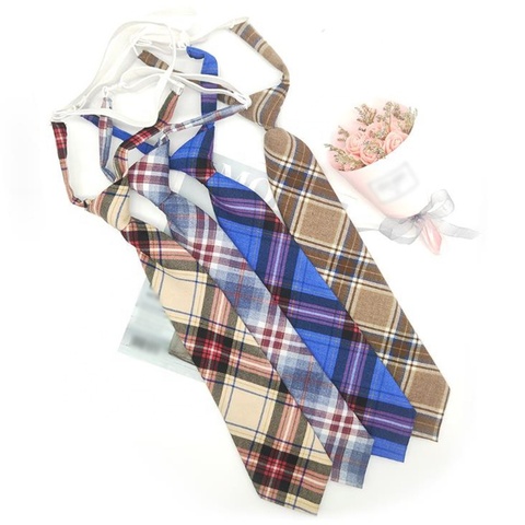เนคไทชุดนักเรียนลายสก๊อตสีสันสดใสเนคไทผ้าฝ้ายโพลีเอสเตอร์ทันสมัยและทันสมัย
