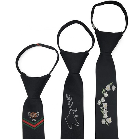 เนคไทโพลีเอสเตอร์แบบมีซิปสีดำทึบสำหรับงานแต่งงานงานปาร์ตี้โลโก้ตามสั่ง
