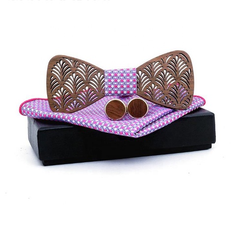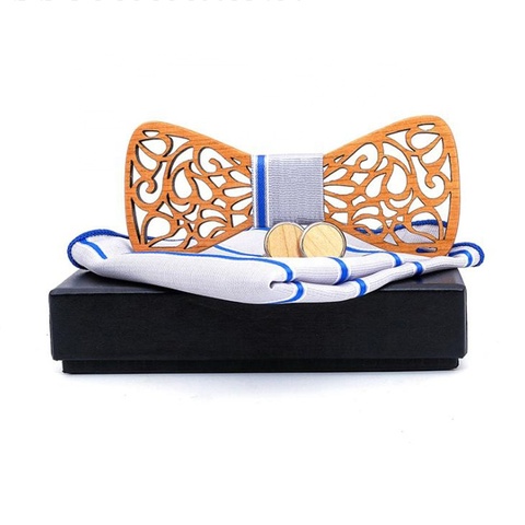 ชุดกล่องของขวัญทรงโบว์และกระดุมข้อมือสำหรับงานแต่งงานงานไม้ดีไซน์พิเศษสำหรับผู้ชาย