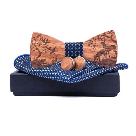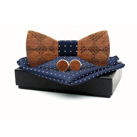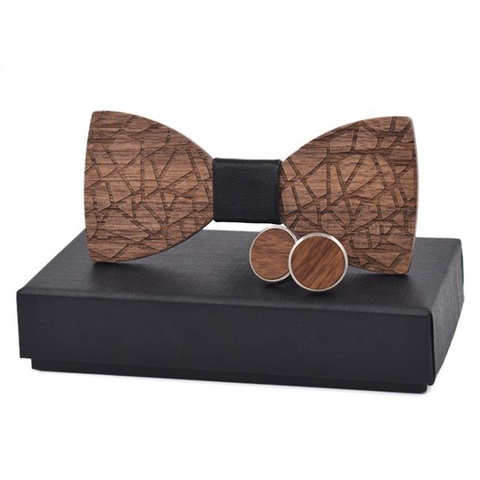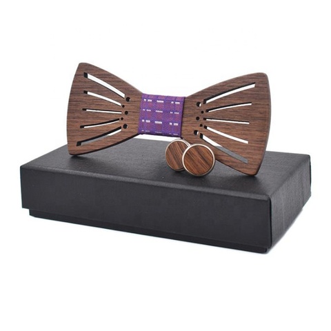ชุดกล่องของขวัญสำหรับธุรกิจผูกโบว์และกระดุมข้อมือทำจากไม้สูทสำหรับผู้ชาย