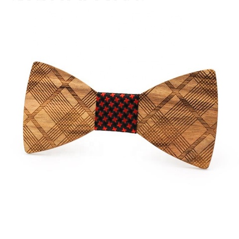 โบว์ไม้สำหรับผู้ชายงานทำมือพร้อมลวดลายสามเหลี่ยม
