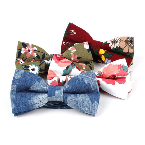 โบว์ผ้าฝ้ายลายดอกไม้สำหรับผู้ชายพิมพ์ลายแบบลำลองสำหรับงานแต่งงานและงานปาร์ตี้
