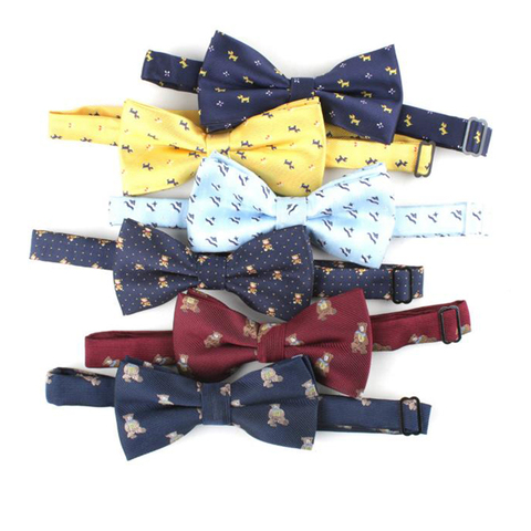 โบว์ผ้าโพลีเอสเตอร์รูปสัตว์การ์ตูนน่ารักออกแบบได้ตามต้องการสำหรับผู้ชายผ้าผูกคอทันสมัย